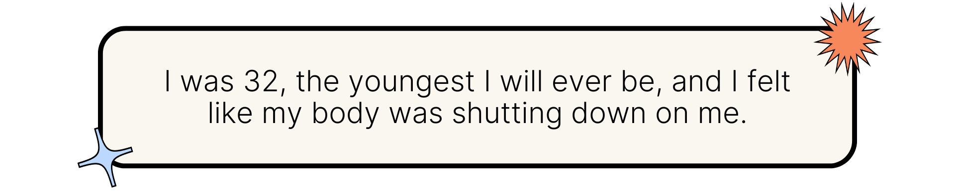 I started bleeding heavily. My iron dropped dangerously low. I needed a blood transfusion. I was passing blood clots the size of my hand in the bathroom, panicked and scared, and felt like nobody at the hospital was really listening. Thank God my mom and my sister are both nurses - they were the ones who pushed for me to get the transfusion.